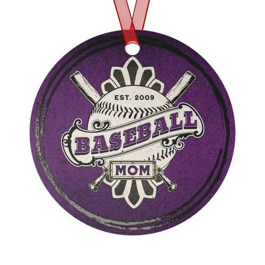 Purple Baseball Mom and Dad Established 2007 2 sided Metal Ornaments