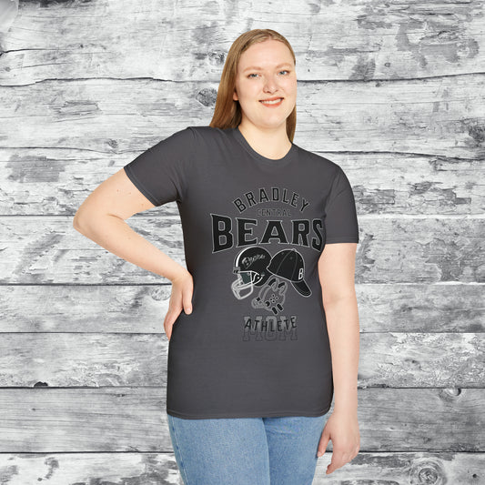 Personalized BCHS Bears 3 Sport Athlete Wrestling Headgear, Baseball Hat & Football Helmet Unisex Softstyle T-Shirt