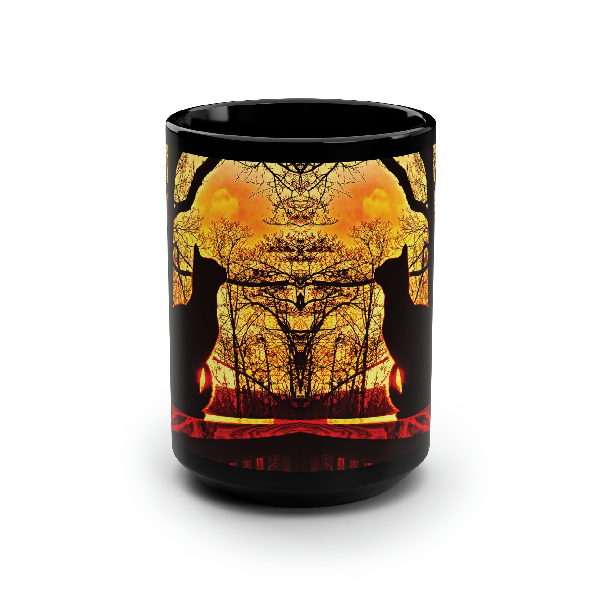 The elegant and sophisticated cat lover will delight in drinking from this dark and mysterious sunset coffee or tea mug.
